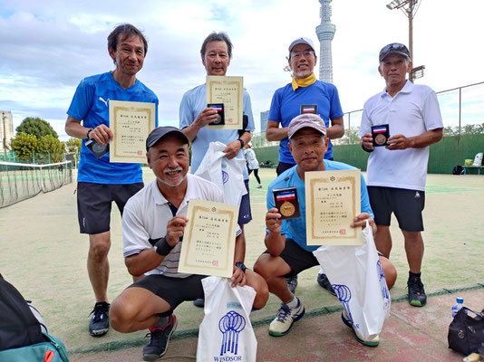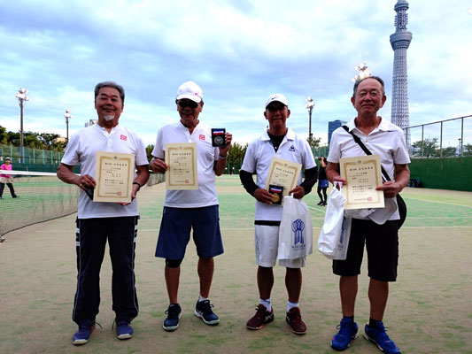 写真左上からベテラン男子70、ベテラン男子65、ベテラン女子50、ベテラン女子40